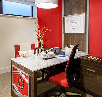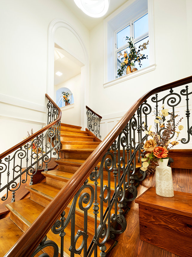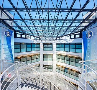 Das beeindruckende Atrium des Gebäudes erhebt sich sechs Stockwerke über den Empfangsbereich. Das Design wurde vom Riesenmammutbaum inspiriert, einschließlich der runden Treppe, die mit einem komplizierten Blattmuster gesäumt ist.